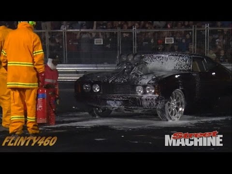 Share Facebook Twitter LinkedIn Pinterest Email Kynan Hall’s amazing Blown Big Block XC Coupe “DVL XC” made the trek to Red Centre Nats… During qualifying it suffered a huge engine bay fire putting an end to his weekend…