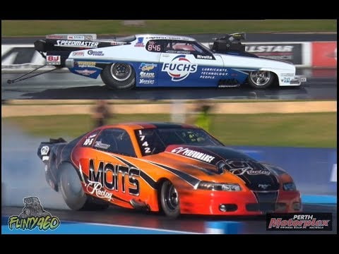 Share Facebook Twitter LinkedIn Pinterest Email Paul Mouhayet in his MOITS Racing Twin Turbo Outlaw Mustang taking on John Zappia’s Supercharged Top Doorslammer. With Zappia taking the win with a 5.80 against Moit’s 5.90…..