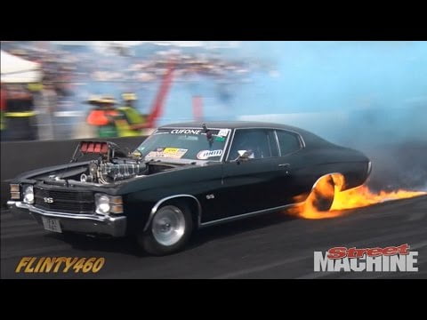 Share Facebook Twitter LinkedIn Pinterest Email Dave Cufone’s awesome Blown Injected Chev “1FATRAT” gets it’s neck rung during Masters Qualifying at Summernats 29, unfortunately a tyre fire cut the skid short.