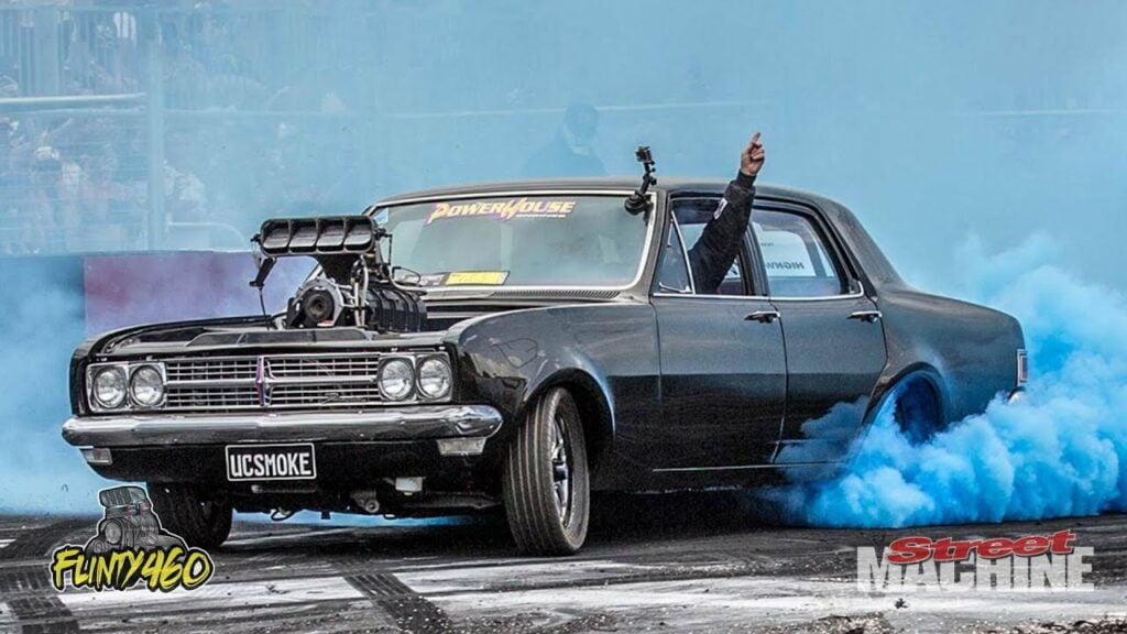 Share Facebook Twitter LinkedIn Pinterest Email Steven Loader absolutely punishes his Blown Big Block HT “USCMOKE” at Summernats 32 during Burnout Qualifying.