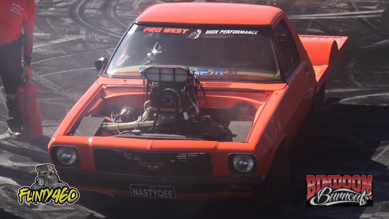 Todd Blizzard’s awesome Blown Injected One Tonner “NASTY QEE” is easily one of the best sounding cars on the scene.. With a heap of Boost shoved down the throat of the Small Block Chev it has a note that is music to the ears of any Burnout fan. Unfortunately an electrical issue cut his day short at Bindoon Burnouts.