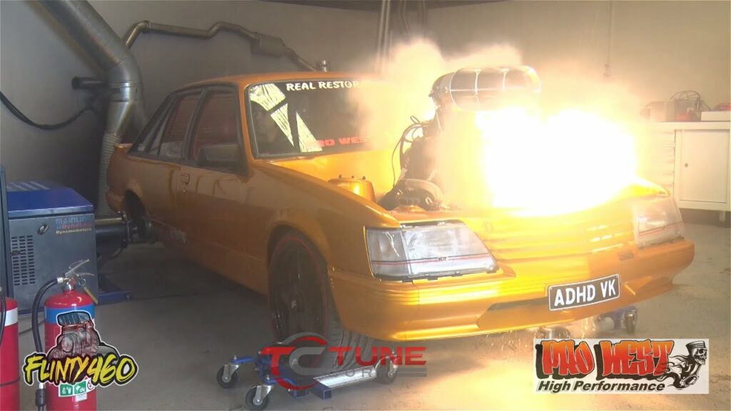 With the car on the Tune Corp dyno and going through the warm-up process the head gasket has failed in spectacular fashion in a shower of flames and sparks cutting the Dyno session short.