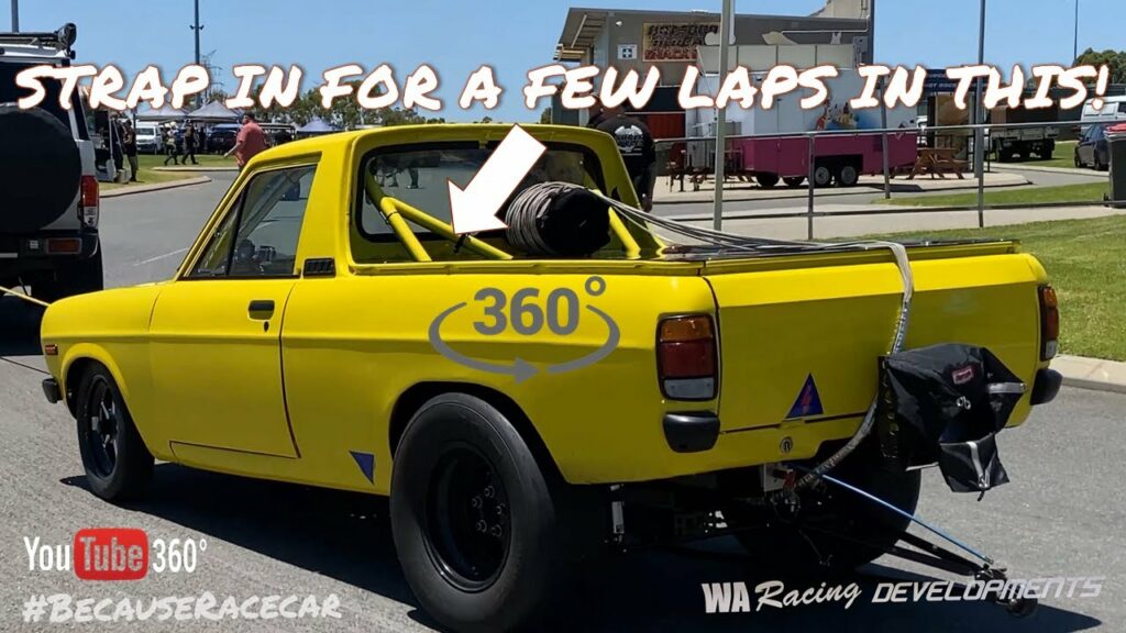 Take a full 360 immersive VR passenger ride onboard the Turbo 12A Rotary Manual 1200 Datsun Ute while it makes a few passes as featured in the previous video!