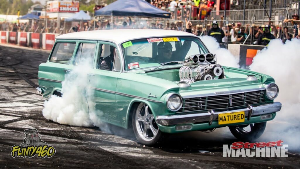 Share Facebook Twitter LinkedIn Pinterest Email Joe Tyler puts his Immaculate Supercharged LS3 EH Wagon “MATURED” on the Burnout Pad at Summernats 33, this car would fit right at home in any Elite Tent but looks even better smashing tyres,after a small tyre fire Joe decided to call it a day.