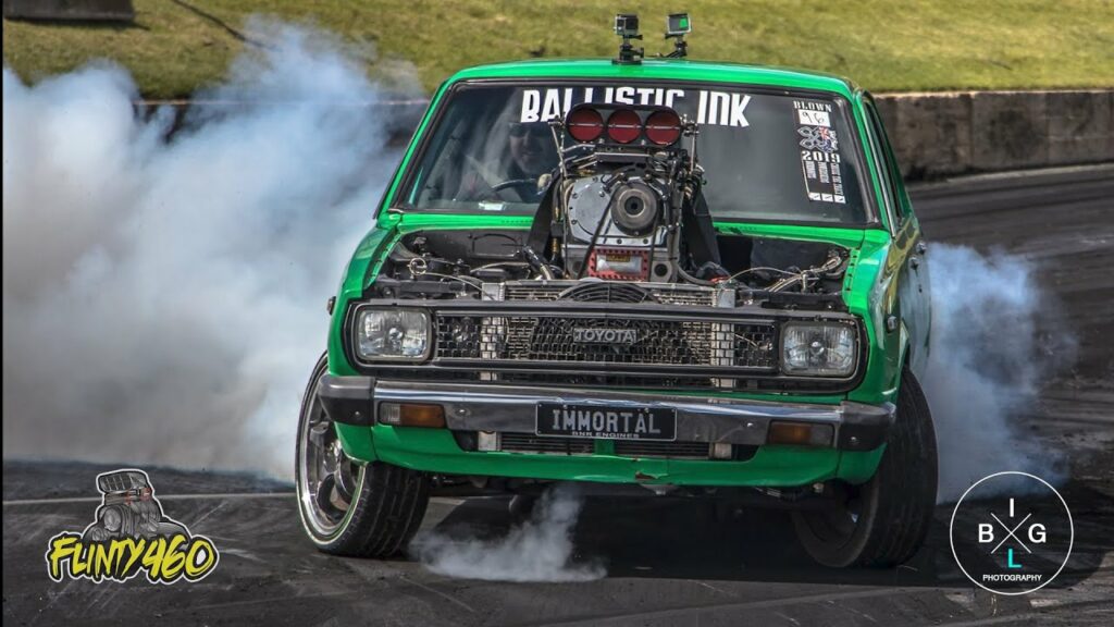 One of the cars was the BNR Engines Shop Car ‘IMMORTAL”, with Brett Niddrie behind the wheel of this Cranky Supercharged Small Block Chev powered Corolla tearing it during the popular Burnout Demos.