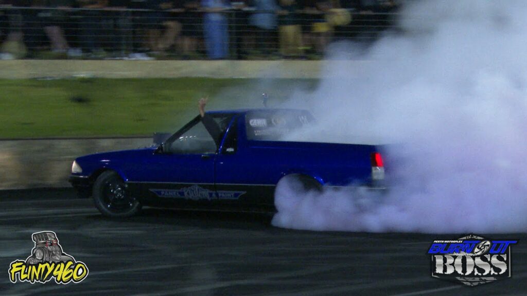 Share Facebook Twitter LinkedIn Pinterest Email Darran Williams hits the Burnout Pad with speed in his Small Block Ute “DIESEL” unfortunately he got a bit close to the wall on the Tip-in damaging the rear quarter.