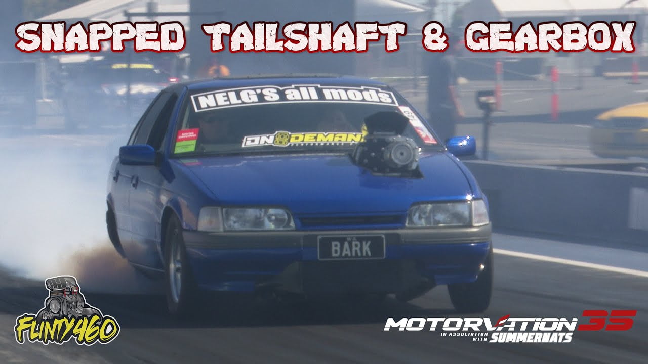 Glen Taylors weekend at Motorvation 35 was over before it begin. On the first Cruise session on Saturday morning and not even 50m off the start line his Supercharged 6 Cylinder Falcon “BARK” snaps the Tailshaft in half which then proceed to take the extension housing off the gearbox causing terminal damage to the Box.