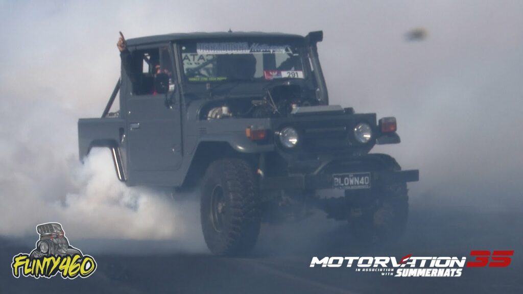 Daniel Catalano recently purchased this Blown Injected 40 Series Landcruiser from over East. With an awesome Burnout on Saturday he returned for the Finals only to kill a Tyre within 4 seconds of hitting the loud pedal, which effectively ruled him out of contention. Not to be deterred, he headed back to the Pits, fitted another Tyre and returned for Demo Burnout.