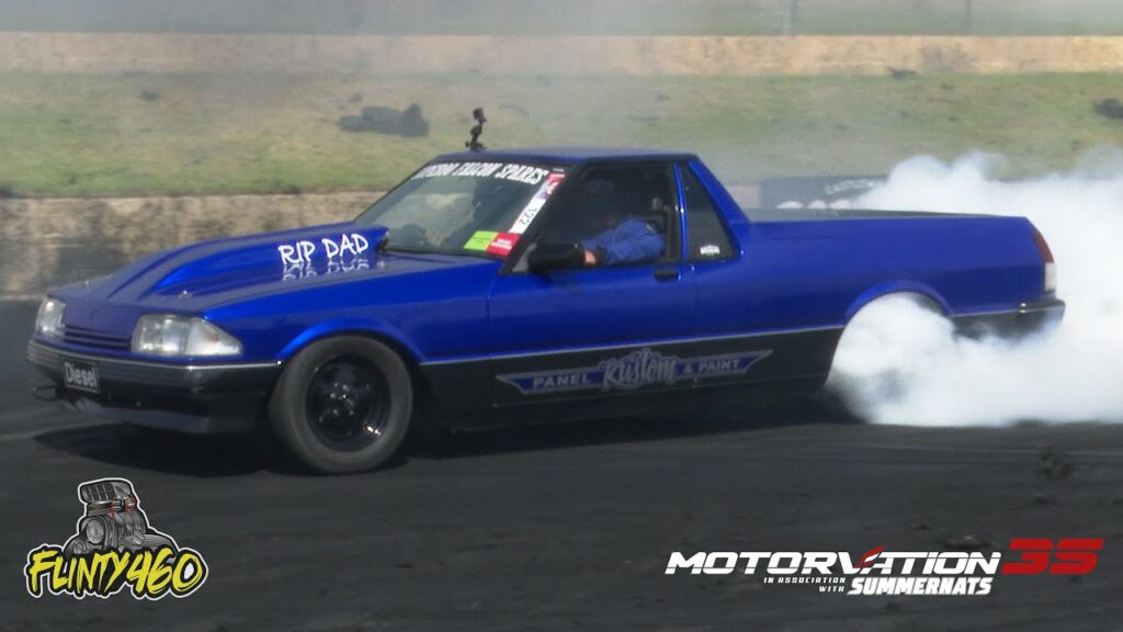 Share Facebook Twitter LinkedIn Pinterest Email Darran Williams putting on an awesome Wheelwork display during the Motorvation Pro Class Final in his Naturally Aspirated Falcon Ute “DIESEL”.