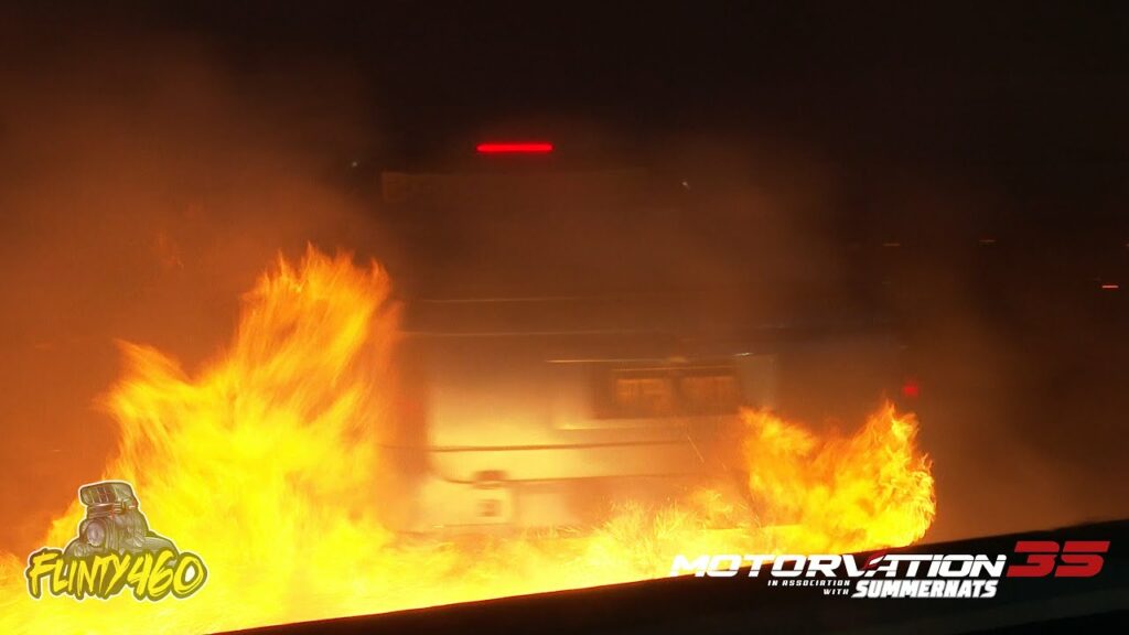 Share Facebook Twitter LinkedIn Pinterest Email Brandon White has a close call on the Tip-in at Motorvation 35 during qualifying in his Blown EFI Ute “RIPA SKID” only to then set the car on Fire. He returned for the Final and laid down a Solid Skid.