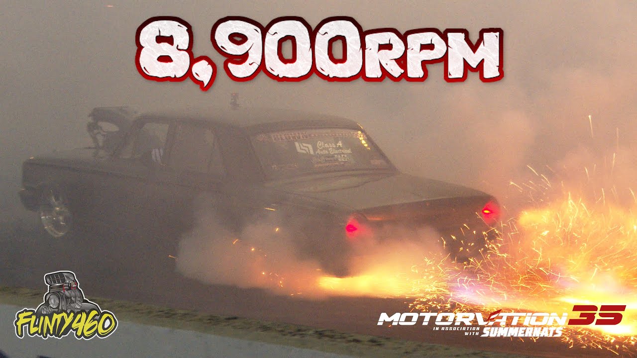 Before punching Rods during the Final, Matt James laid down one of the best skids of the night during Qualifying at Motorvation 35. With the Blown Injected Small Block Chev powered Compact getting punished at 8,900rpm, when you consider this is with around 30 pounds of boost you can understand why it sounds so good.. Turn up the volume!!!
