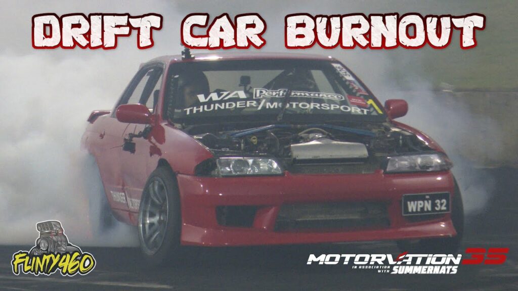 Share Facebook Twitter LinkedIn Pinterest Email Mitch Larner gets his WPN 32 Nissan Skyline Drift Car on the Burnout Pad at Motorvation 35 and throws it around like no tomorrow..