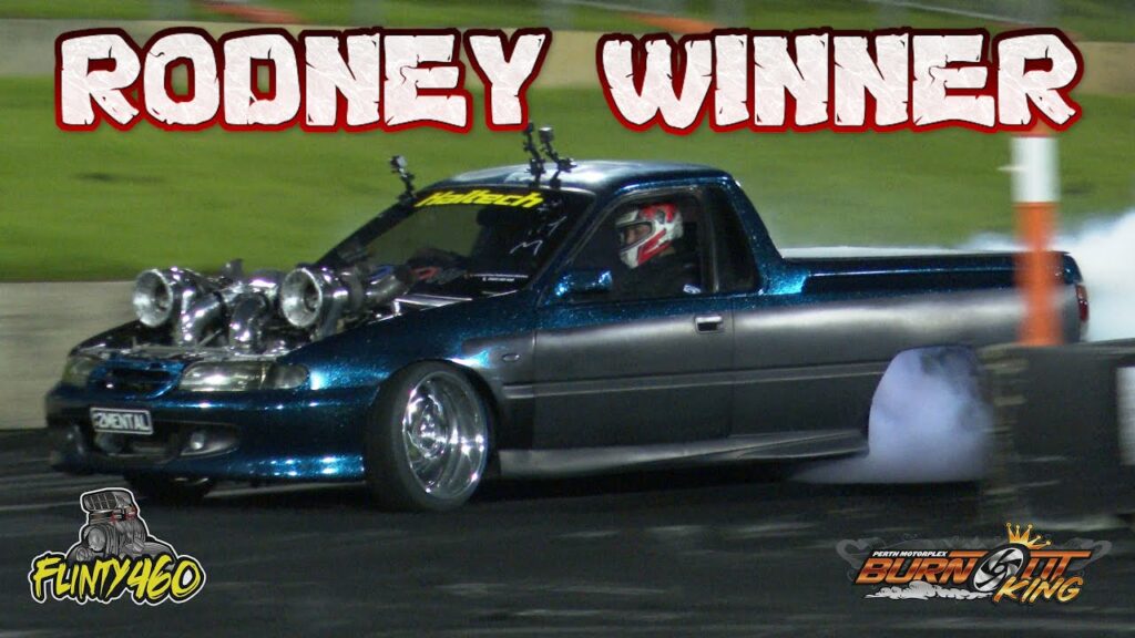 Share Facebook Twitter LinkedIn Pinterest Email Chad Douglas wins the Rodney Award at Burnout King after breaking the engine within 12 seconds of hitting the Loud pedal in his Twin Turbo Ute “2MENTAL”.