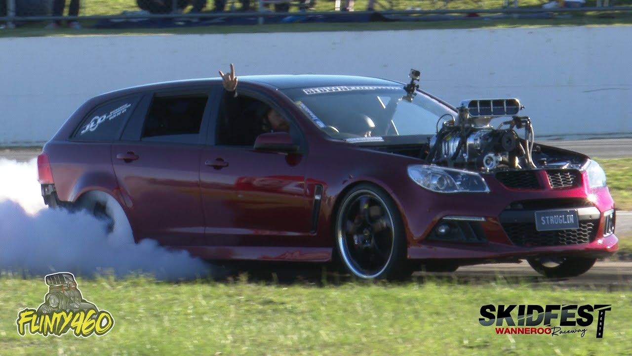 Share Facebook Twitter LinkedIn Pinterest Email Justen Brown has a hard time at Skidfest in his Blown Injected Wagon “STRUGLIN” with 2 Engine Bay Fires from 2 Burnout attempts..