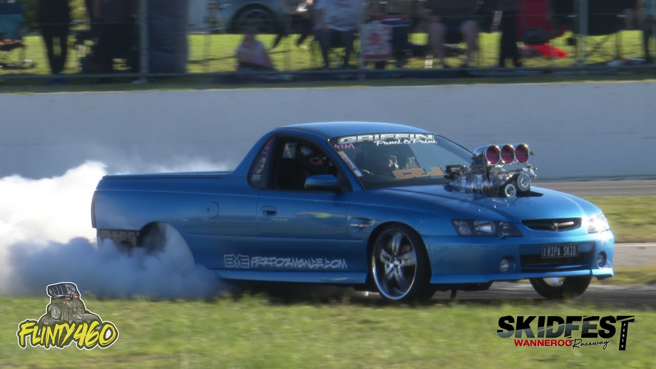 Share Facebook Twitter LinkedIn Pinterest Email Brandon White tears it up at Skidfest in his Blown Injected Ute “RIPA SKID” only to have a piece of rubber wrap itself around the throttle linkage cutting his skid short.