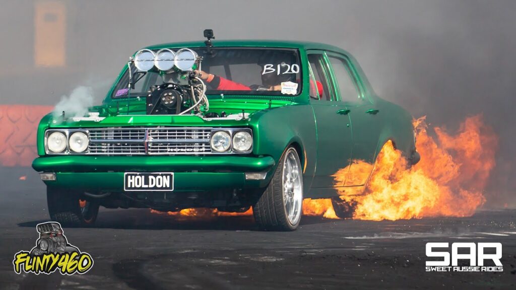 Share Facebook Twitter LinkedIn Pinterest Email After a complete rebuild of the car including new engine, wiring and a fresh paint job Ryan Pearson puts his immaculate HT “HOLDON” through its paces at Brashernats only to suffer another HUGE Tyre Fire.