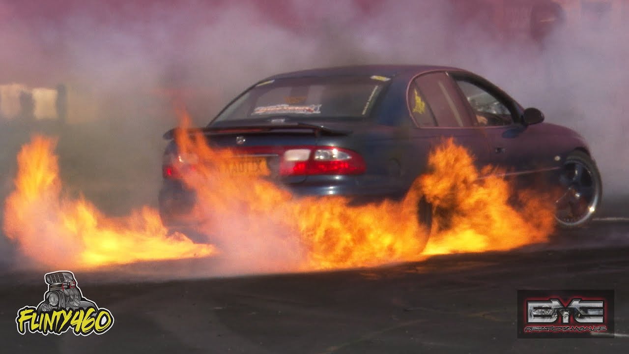 Unfortunately for Michael Hinchy his CLIKB8 Commodore had Mechanical issues before getting to the Burnout Pad, which meant any effort from Mitchell in his Blown Injected Commodore “KAOTIX” was going to result in the win, even if it meant a Huge Tyre Fire.