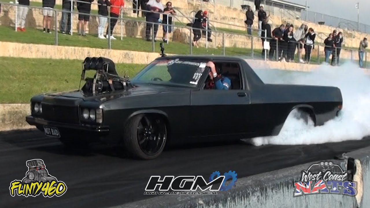 Share Facebook Twitter LinkedIn Pinterest Email Tom Hooper rips it up at The High Grade Mechanical West Coast Nats in his Blown Big Block 460 Cube HZ Ute “NOT BAD”.