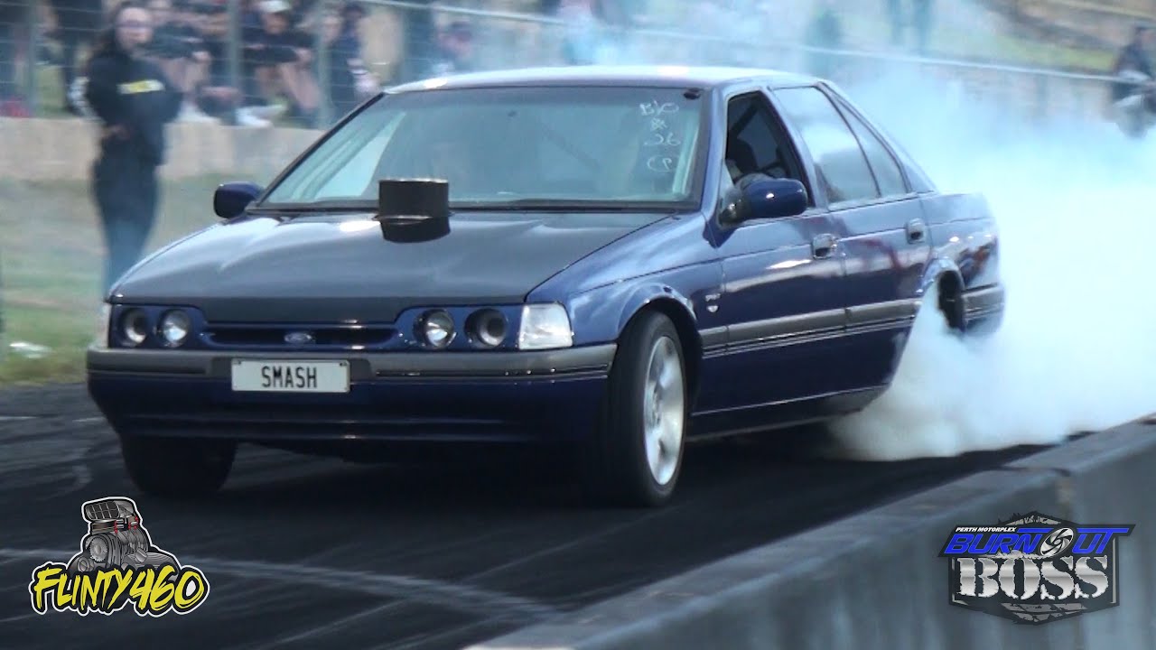 LS1 ED FALCON “SMASH” HITS THE WALL AT BURNOUT BOSS