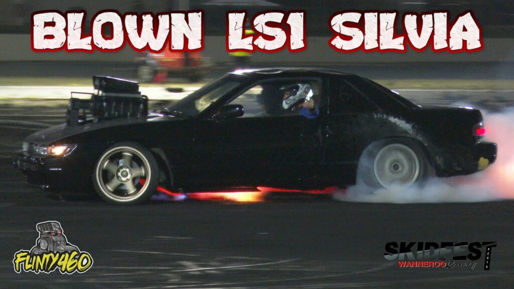 Share Facebook Twitter LinkedIn Pinterest Email With unmistakable Blower whine this Supercharged LS1 Nissan Silvia goes off at Skidfest, the first skid was pretty entertaining but the 2nd skid had everything; flames, limiter and blower whine….