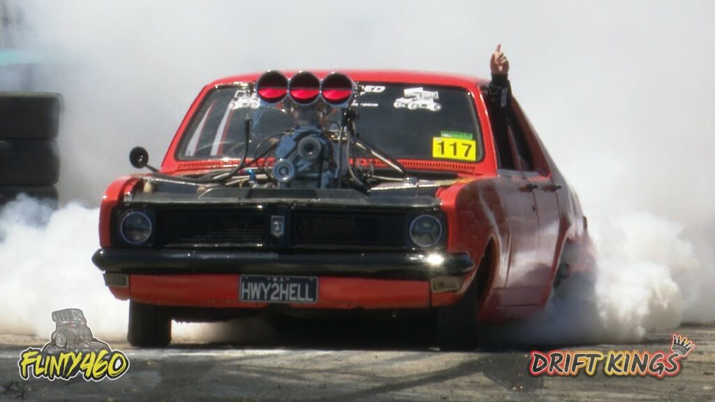 Share Facebook Twitter LinkedIn Pinterest Email Paulie Settatree takes his Mother-In-Law for a Burnout in his Blown HG Sedan “HWY2HELL”. After stripping the Belt on the first skid, the team managed to source another belt as they had tyres to punish.