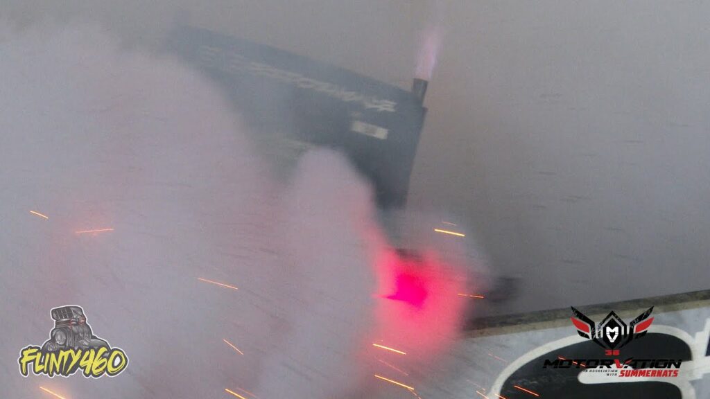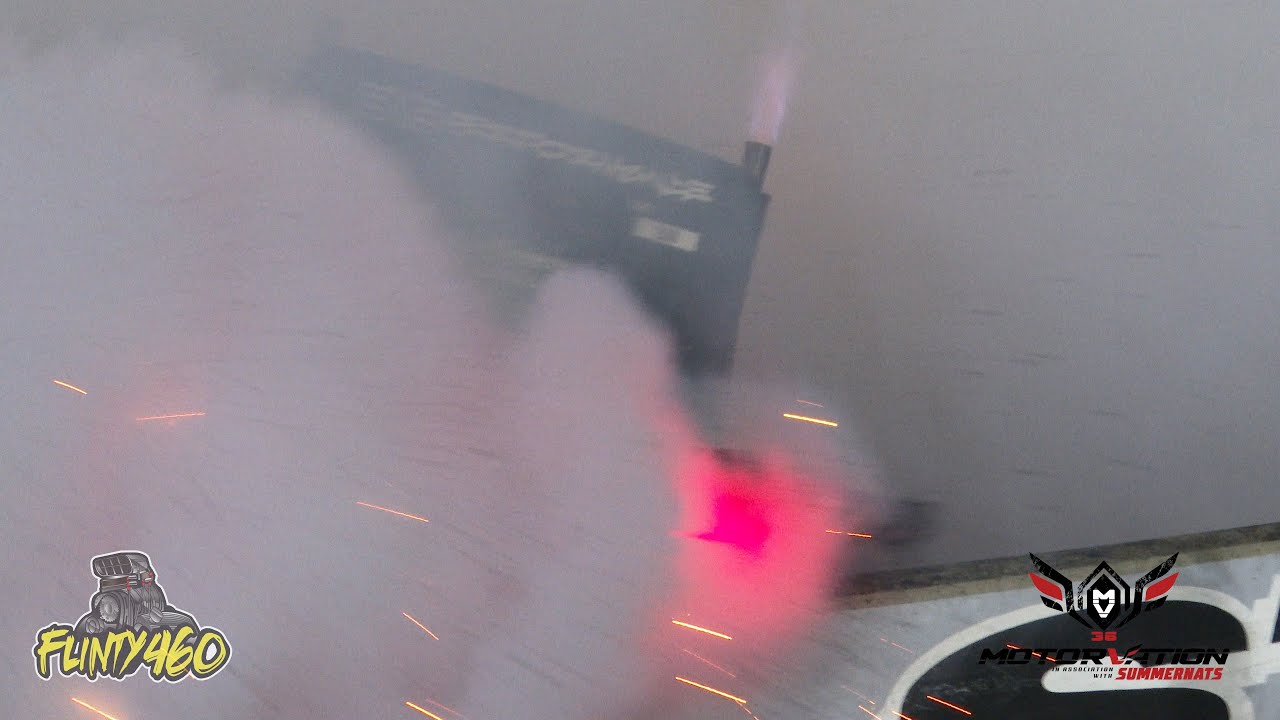 Share Facebook Twitter LinkedIn Pinterest Email Darryl Ferguson tries to clear the wall at Motorvation 36 in his Blown EFI Truck “SMOKNRAT”, only to be shutdown shortly after due to an engine bay fire.