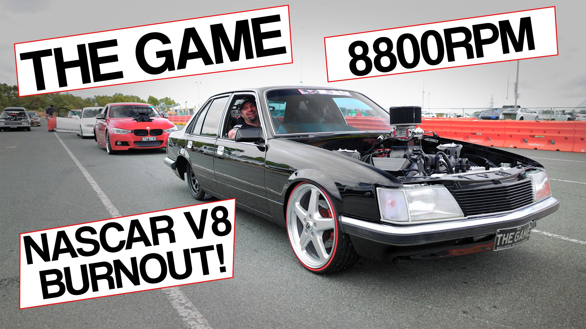 Chris Orchard debuts his new VH SLE Commodore “THE GAME” at Motorvation 36, Running a NASCAR v8 engine which is capable of revving to over 8000RPM and running at that RPM for a very long periods of time brings a different kind of sound to the burnout pad at Perth Motorplex, just listen to it!.