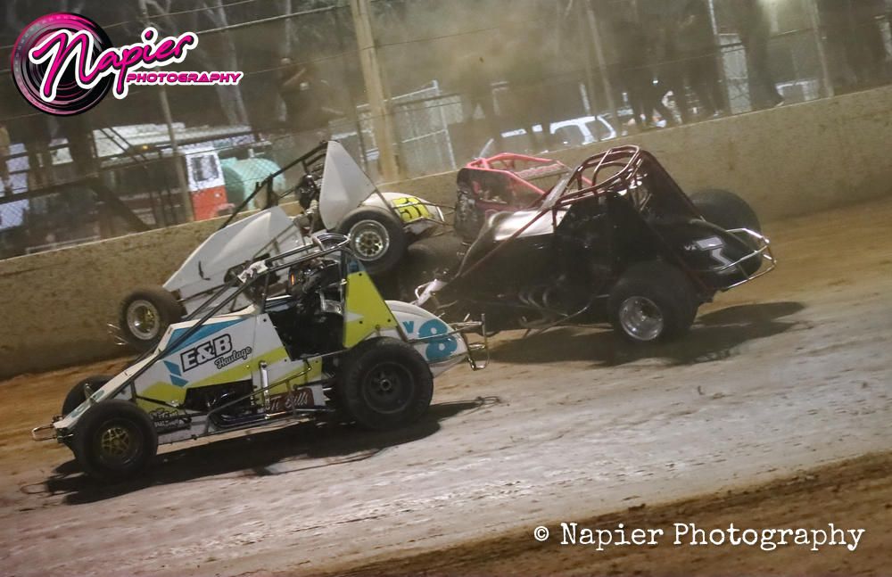 The Wingless Sprint Cup was the co-main event on the schedule and locally developed former Junior racer at Alexandra Speedway Club Kasey Garlick was one of the favourites for the fans and on credentials. Sean Fitzpatrick, Jordan Nicholas, BJ Harris, Will Green, Kerry Bright and Garlick won the six heat races leading up to the main event.