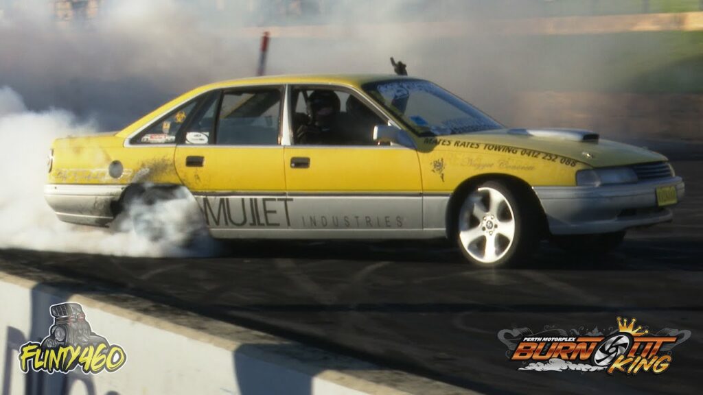 Share Facebook Twitter LinkedIn Pinterest Email Stuart Hope takes the Runner-up spot in the Sportsman Class at Burnout King in his mate’s VN Commodore “KWINANA BANANA”.