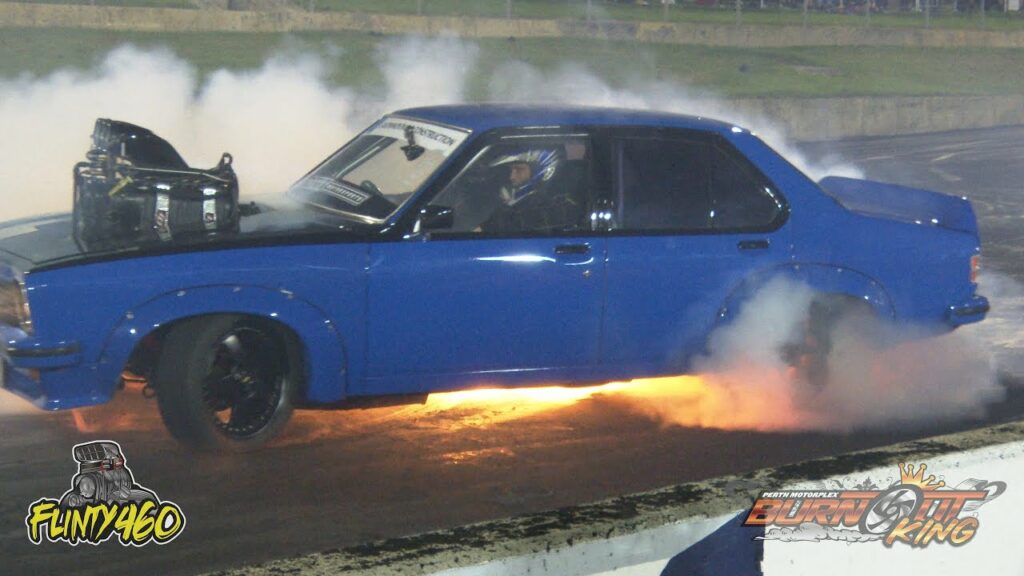 Share Facebook Twitter LinkedIn Pinterest Email Darren Green drives off early at Burnout King in his Blown Injected Torana “LX-383”.