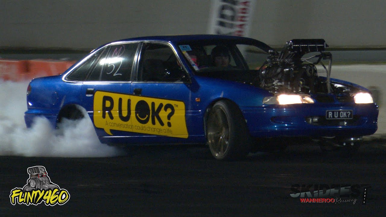 Share Facebook Twitter LinkedIn Pinterest Email Ben Lugg gets some more seat time in his freshly built Blown Injected Commodore “R U OK” at Skidfest. Unfortunately the Blower Belt snapped cutting his Burnout short.