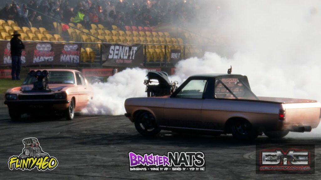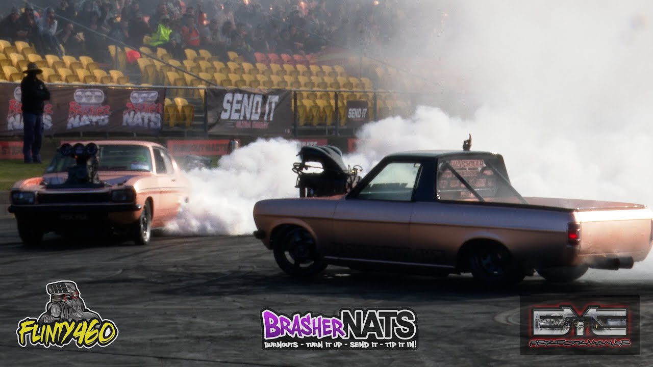 Share Facebook Twitter LinkedIn Pinterest Email Danny & Adam open the show at Brashernats with another awesome dual skid in their Blown Injected Capri “FUK YEA” & Datsun Ute “FUK DAT”.