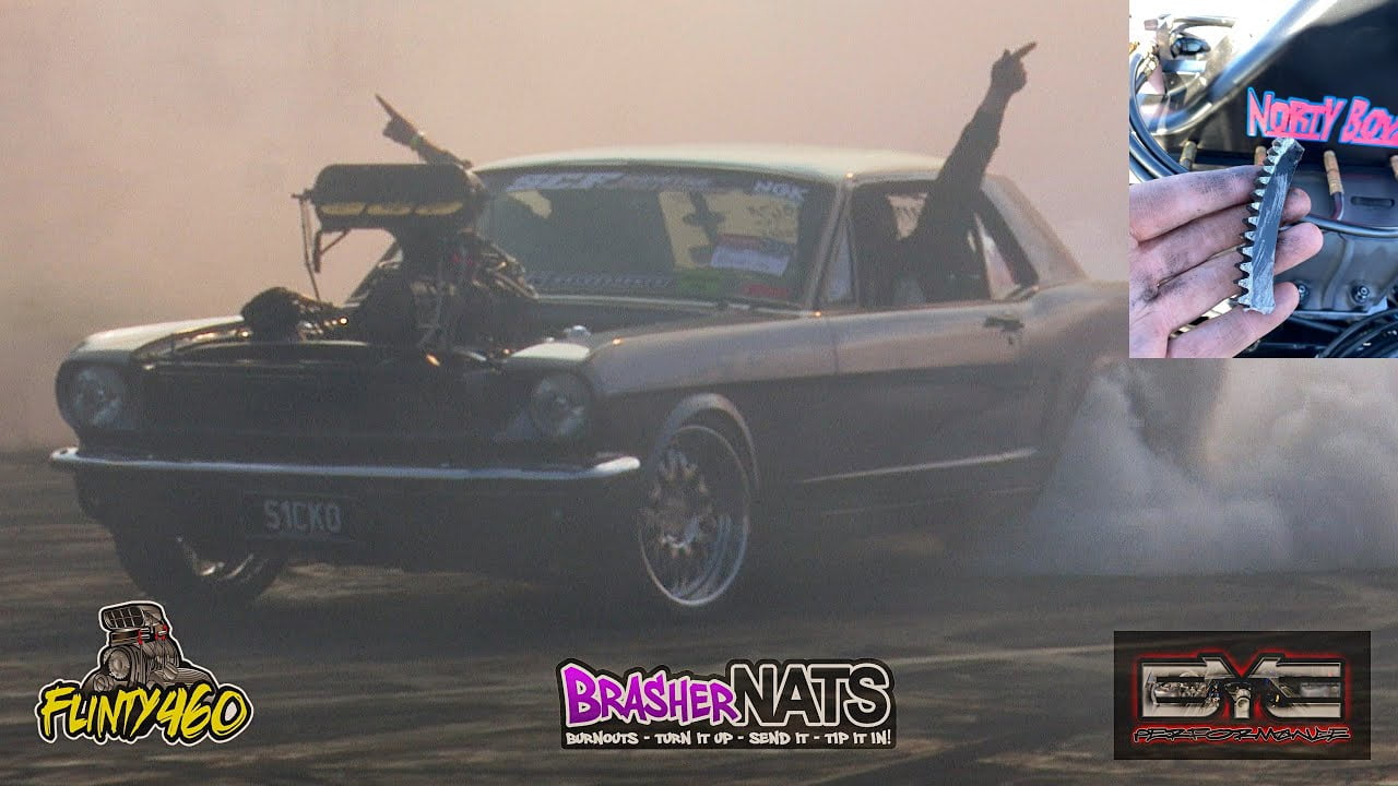 Unfortunately he couldn’t return due to damage sustained, during the Burnout the Flex plate disintegrated and a 3-4 inch piece of the ring gear come through the Bellhousing and Trans Tunnel into the car and even dented the underside of the Steering column, narrowly missing his feet..