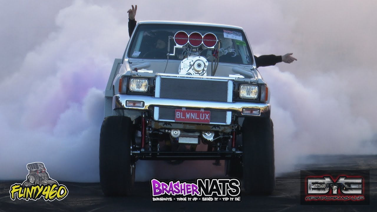 Share Facebook Twitter LinkedIn Pinterest Email Powered by a Blown Injected Big Block Chev, Brett Battersby’s insane BLWNLUX destroys tyres with ease at Brashernats 2022 and smokes out the venue.