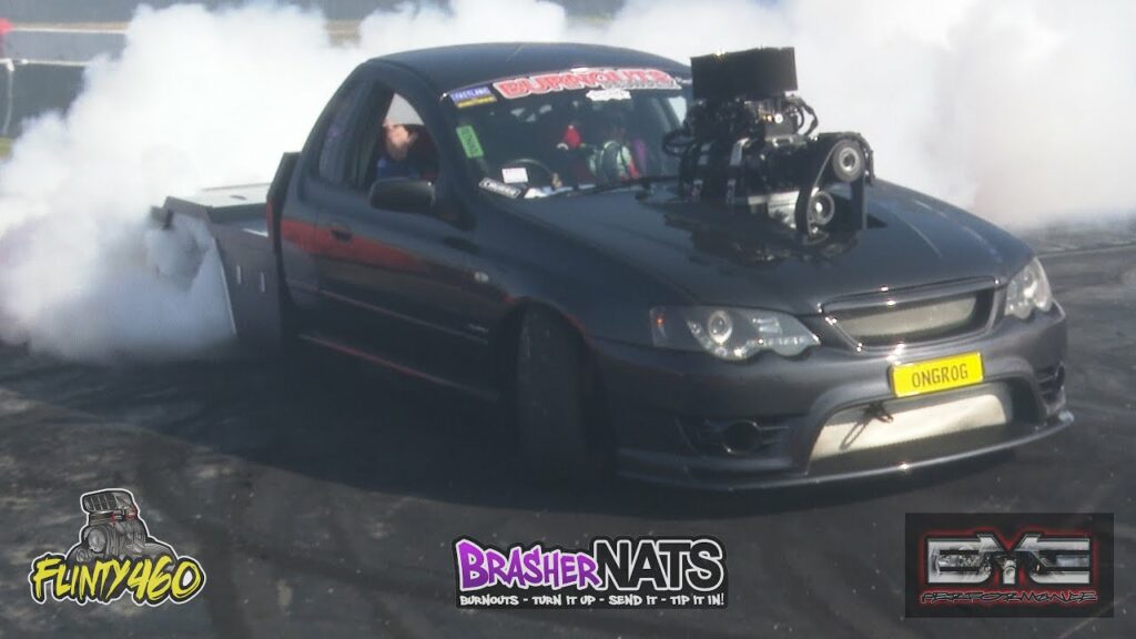VIDEO: BLOWN CLEVO BA UTE “ON GROG” AT BRASHERNATS