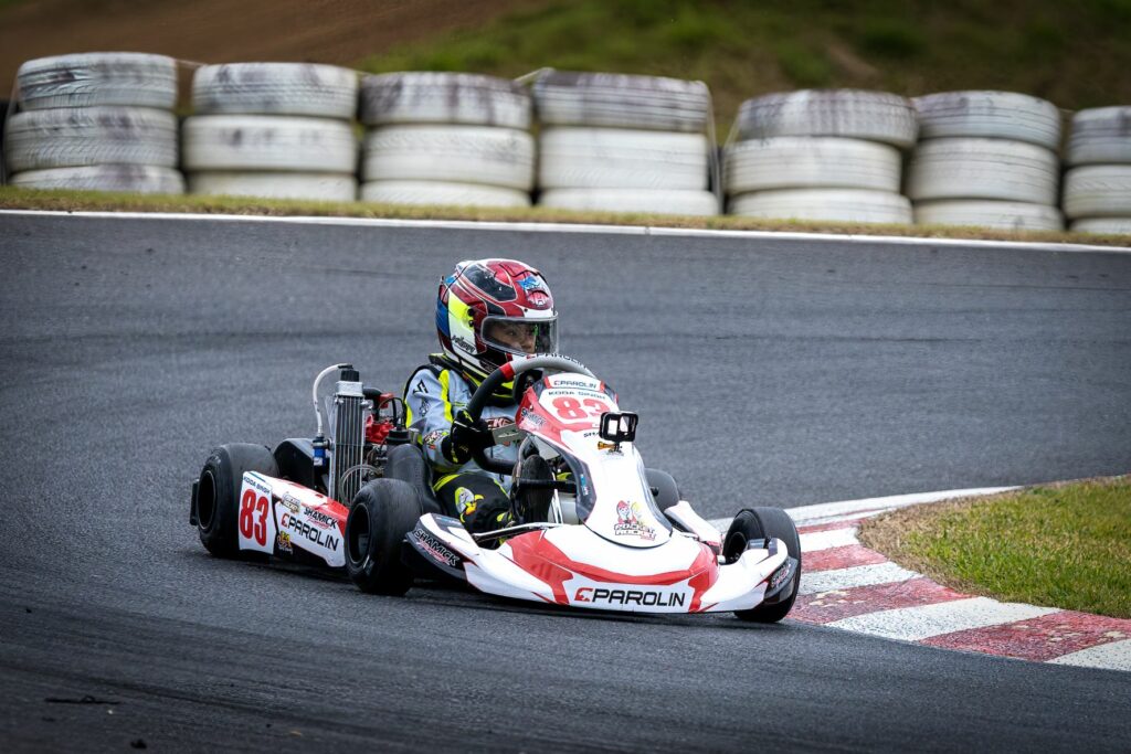 Singh hit the track for Saturday morning under wet and damp conditions. Koda hit the circuit in his Parolin Australia kart and was immediately showing strong pace and excellent kart control in the tough conditions. Singh had managed to put himself at the top of the times and was working as hard as possible to grab the all-important pole position. Koda stopped the clock in position number 1 in what was a great start to his weekend!