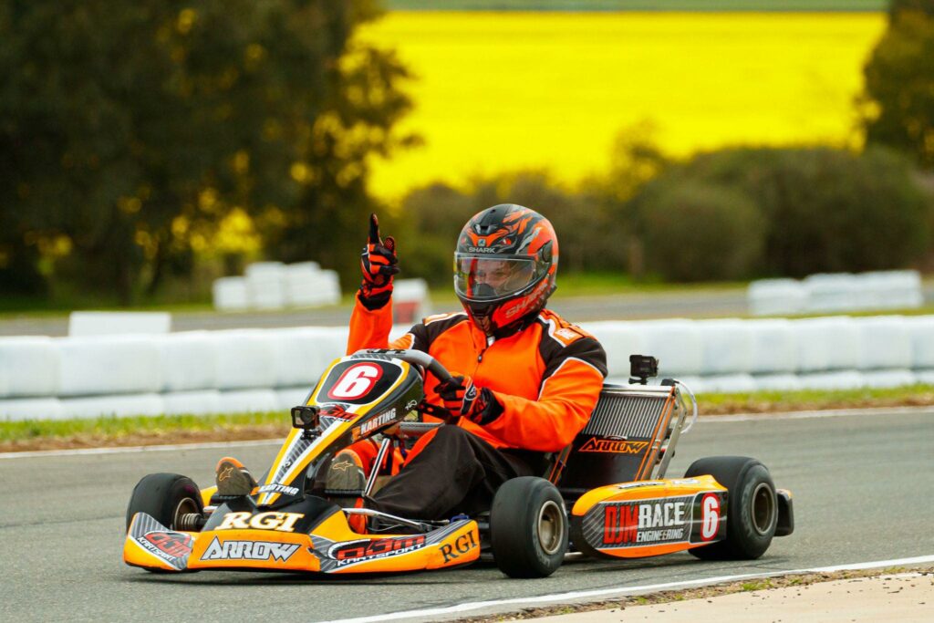 Brett Jenkin was the shining DJM Race Engineering light in TAG 125 Restricted Heavy, taking another pole position in qualifying. Jenkins dominated the heats taking out all 3 heat wins and was looking for his 4th consecutive round win in the championship. Brett didn’t look back in the final, leading all 15 laps and opened up margin to take another commanding round win for DJM Race Engineering!
