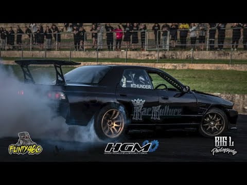 But we have to draw a line somewhere so he uses the entire Dragstrip return road consisting of over 400m of bitumen and he never fails to disappoint the crowd with some INSANE Burnout Demonstrations at West Coast Nats in his LS1 R32 Skyline.