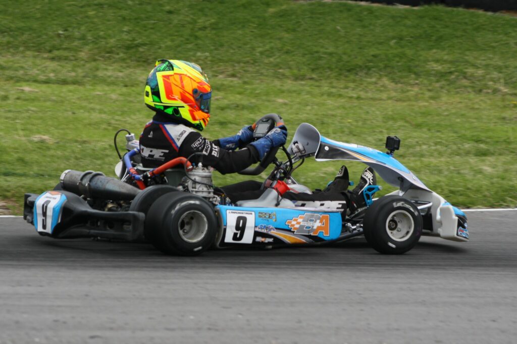 James was back out on track on Sunday and was qualifying in the wet, damp conditions. Anagnostiadis was once again able to put in a brilliant performance setting the 4th fastest time which had him off the 2nd row of the grid for race 4. James was shuffled back just outside the top 5 in race 4 crossing the line in 6th but a post-race penalty dropped him down to position 8. Anagnostiadis had a tough start to race 5 being put to the rear of the near 20 kart field. James drove his heart out and was able to recover to position 10 overall which had him off 9th spot for the 20-lap feature on Sunday. Anagnostiadis was able to put in another stellar performance moving up 4 spots on coming home just outside the top 5 in position 6 overall!