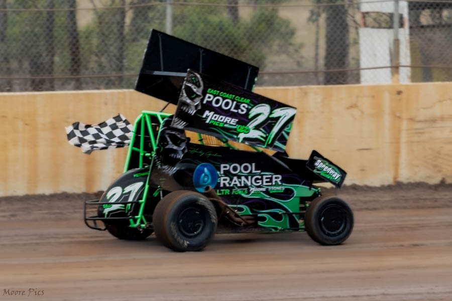 Harley Graham snatched the win from Ally Moore a Victorian with a terrific result in second, Moore led at the white flag before Harley Graham took the win on the last lap. Third was Stone, then came Luke Graham, Jason Alie, Scott Burchett, Maureen Sell, and rookie competitor Toby Perrett.