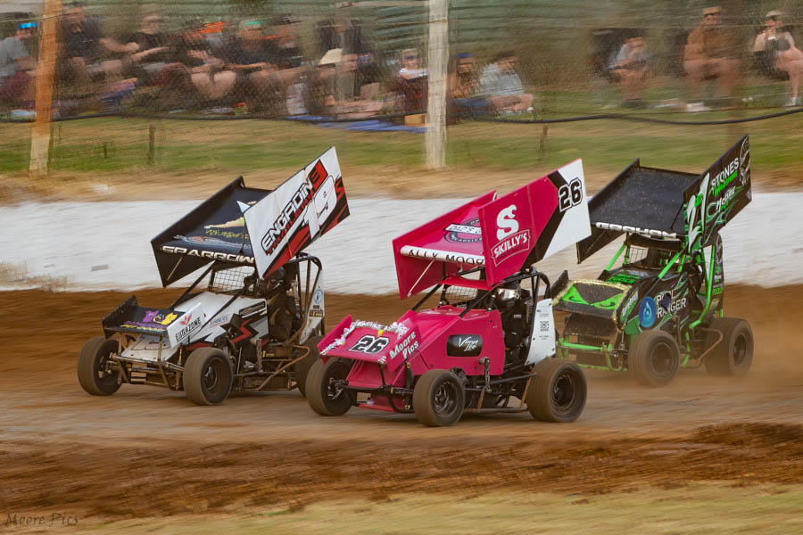 Maureen Sell and Victorian Champion Danny Stone a New Zealander by birth who originally lived in Victoria before moving to New South Wales after landing in Australia started on the front row, the three time and current national champion AJ McTaggart on the second with Jason Lynn then Luke Graham and his cousin Harley Graham, then Jason Alie and Jack Selmes, then Matt Mason and Vic McTaggart rounded out the first heat line-up with Ally Moore out due to a fuel leak.