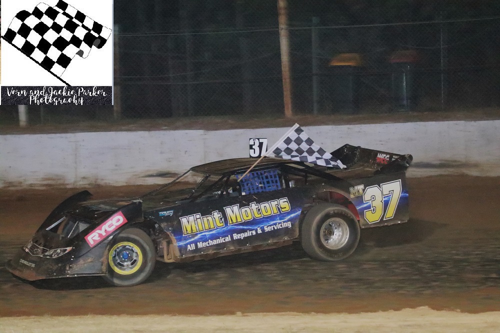 Local association the Goulburn Ovens Sedans Association held a points event for their members Fleming-Robertson who also competed in Standard Saloons won the first heat of the night with Robert Garlick the second and third and Marty Bassett winning the fourth and final qualifier. Former Wahgunyah club President Peter Little was a popular winner of the final given the significance of the night being a fund raiser for the club he loves. He defeated Bassett, Justin Brockley and the Schmetzer boys Tommy and Benny in fourth and fifth.