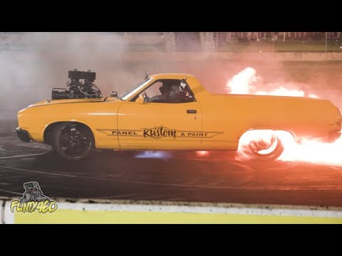 After smashing a few sets of tyres on the Cruise route during the day, I hit the Snakepit in my 532 Cube BBF XC Ute “OLD HOON” for Qualifying on the Saturday night. Unfortunately, a gearbox leak started the Tyre Fire and once alight was not going out in a hurry.
