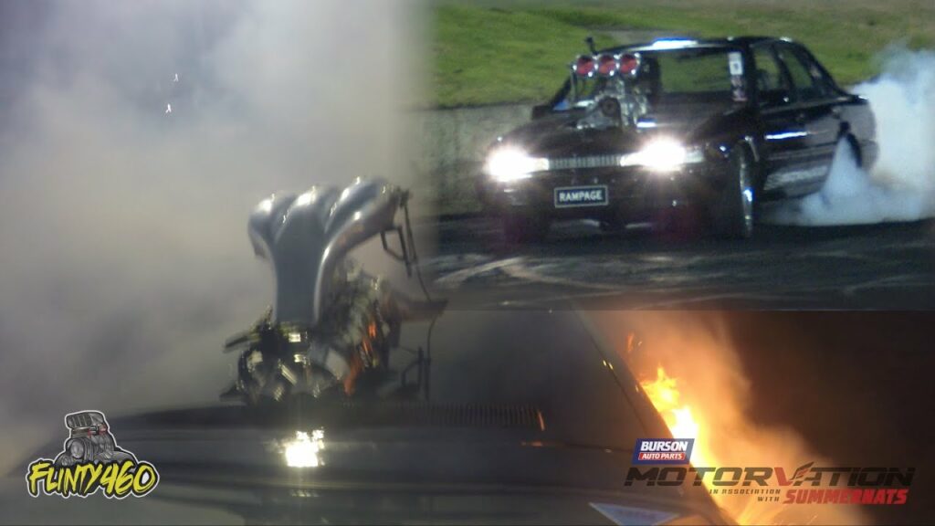 Share Facebook Twitter LinkedIn Pinterest Email Darren Clinton has an Engine Bay Fire at Motorvation 37 in his Blown EFI VL “RAMPAGE”.
