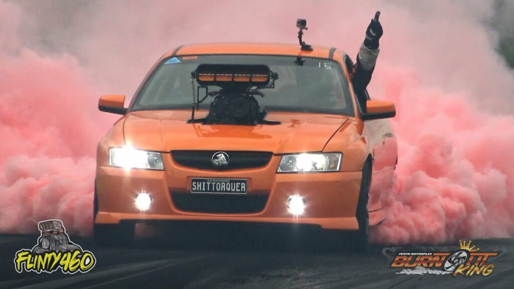 Jamie Ball has a Close Call with the Wall at Burnout King during the Final, with a huge Tip-In speed he carried the skid right to the end of the Snakepit and only missed the wall by very small margin. Not to be deterred, he reversed and smashed the Loud Pedal in his Supercharged EFI Ute “SHITTORQUER”.