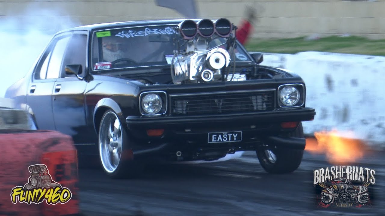 Share Facebook Twitter LinkedIn Pinterest Email Glenn Eastwood takes to the Brashernats Burnout Pad in his Blown Injected Torana “EASTY” and puts on an awesome show.