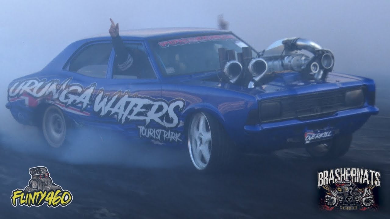 Share Facebook Twitter LinkedIn Pinterest Email Ben Bolton lays down an impressive Burnout at Brashernats in his Twin Turbo & Supercharged Barra Cortina “OVERKILL”.