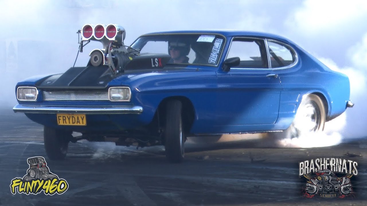 Share Facebook Twitter LinkedIn Pinterest Email Brett Rostirolla takes to the Brashernats Burnout Pad in his 10/71 Blown Injected 325ci LS powered Capri “FRYDAY”.