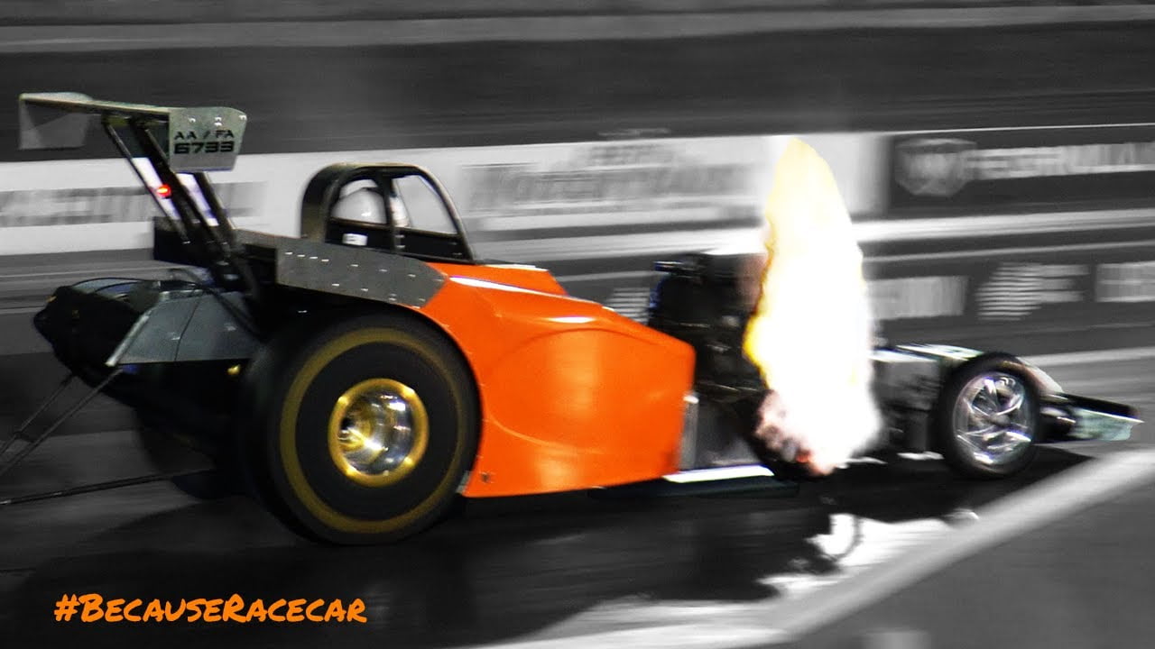 Could start to call this Hot Orange Altered a bit of a regular on the channel now, it’s definitely racking up it’s fair share of air time and as usual is always pretty exiciting to watch as it’s always a handful and a bit naughty trying to get it down the track. The madman piloting it (James Kemp) doesn’t seem too phased and takes it all in his stride as he steers the Altered essentially the whole way down the track, and probably also one of the only people we’ve seen who’s been able to pedal a Nitromethane several occasions all in the same pass without it obliterating itself! Not sure if that’s skill, luck or a combination of both but it definitely makes for a some wild passes that we get lucky enough to film!