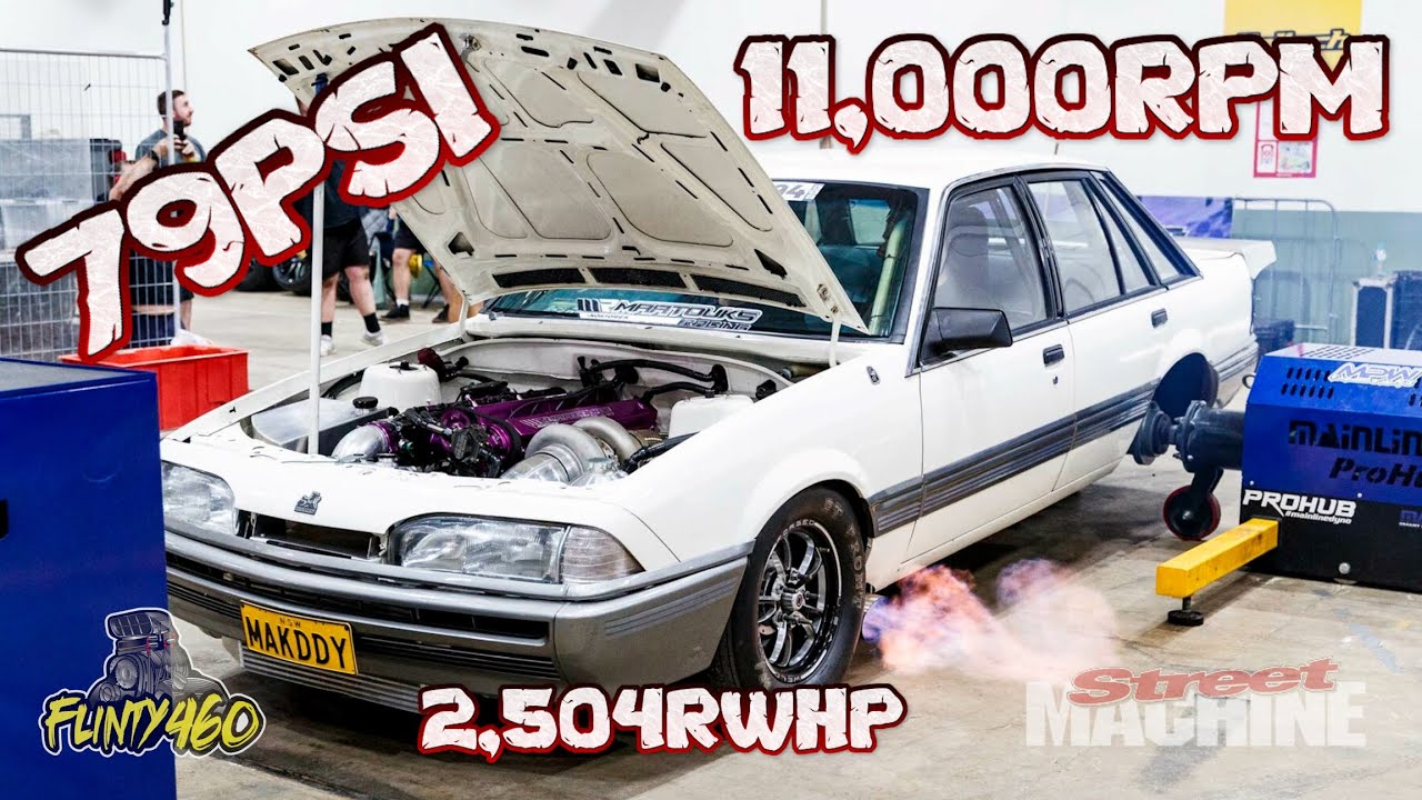 The Maatouks Racing-built VL Commodore, MAKDDY, took the record with an incredible 2,504rwhp from the boosted RB30/26 VL Commodore.